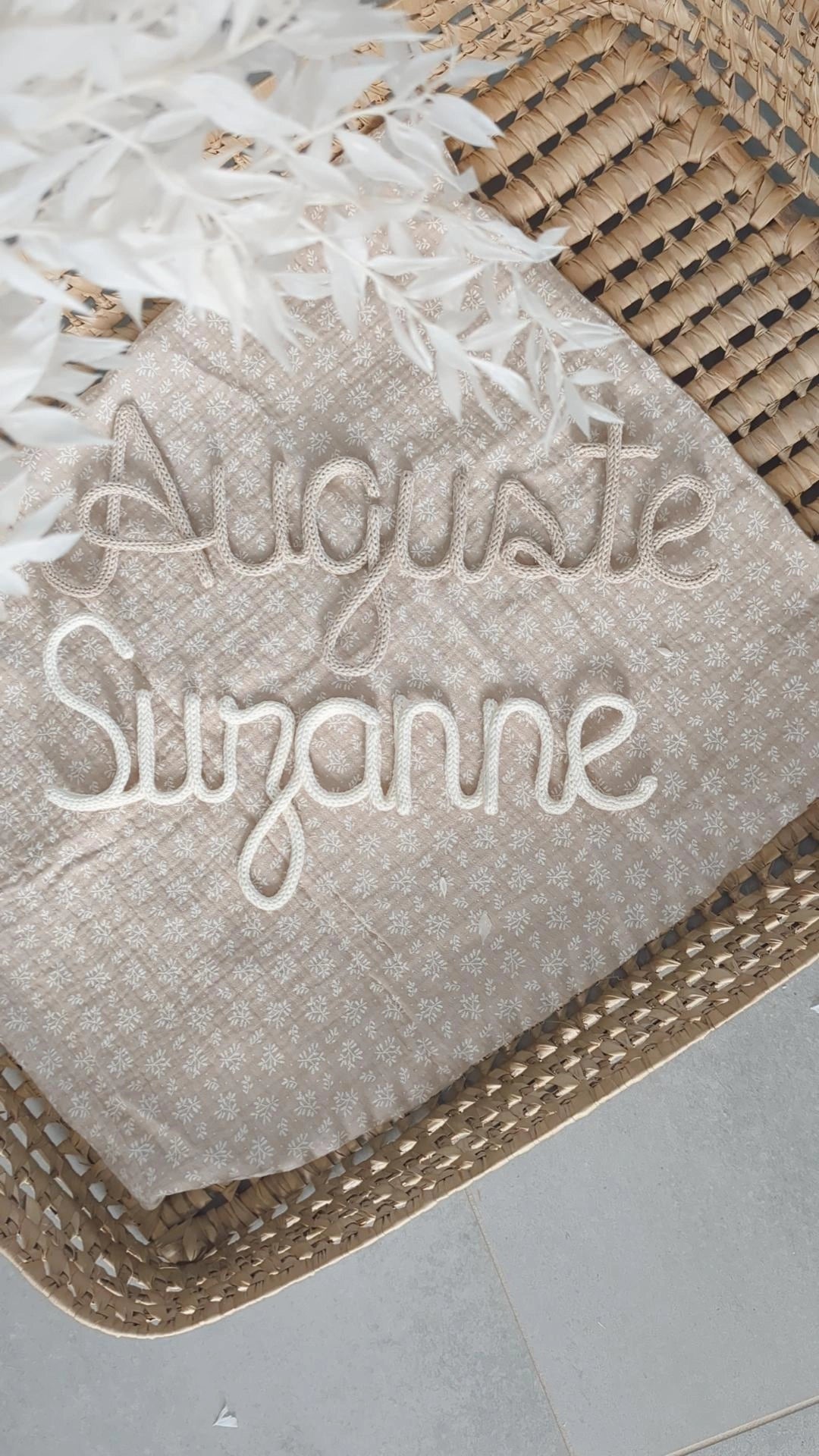 Réalisés entièrement à la main, deux types de calligraphie sont utilisés. En fonction du mot ou prénom, je choisis une calligraphie plus féminine ou plus masculine.